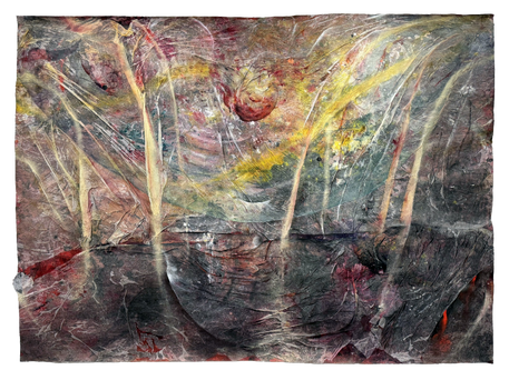 ZIAN Gallery is pleased to present Wang Xingyun: A Touch, A Flame, opening on 17 May in Beijing. Featuring a new series of paintings and casts, the exhibition explores the intricate interplay between landscape, consciousness, the senses, desire, and the human body in Wang’s practice. This marks her first solo exhibition at ZIAN Gallery, and coincides with a solo presentation at Booth G5, ART021 BEIJJING, on view from 22 to 25 May 2025. Wang Xingyun approaches paper not merely as a surface but as an active material to be reprocessed, recycled, and transformed. When painting, she uses pigment, glue, sanders, and various tools to manipulate multiple layers of paper, fusing, breaking, and reshaping them into textured forms. These layers, once completed, become new surfaces for further exploration, revealing intricate flows and tensions - liquefied, hardened, twisted, and intertwined. A Touch, A Flame will debut a number of Wang’s new works, including the artist's latest series of plaster and pulp casts, which merge landscape and biomorphic forms. Wang is drawn to how different materials transform the meaning of these forms — the softness and fragility of paper becoming sculptural through its transition into relief- like plaster. She extended the limitation between the painted surface and its frame, allowing the fluid contours of the body to extend beyond the canvas, as if caught in a state of endless flow. Hands serve as a central and recurring image throughout Wang Xingyun's practice. When painting, the artist lays the paper flat on the ground, using her hands extensively as tools to directly engage with the materials – smearing, tearing, splashing paint, blending, and spreading. Watercolour and minerals inevitably stain her hands, leaving unrepeatable traces. The clenched hands carry a metaphor for attachment. In "Dwelling Places 9," two hands are hidden in a bloody chaos. On the left, slender knuckles resemble newly grown vines, breaking out of the flesh and blood; on the right, a thick hand is shaped like ancient clouds, surging and roaring. The moment they are about to touch awakens the earliest memory of connection in life, like an infant connected to the mother's flesh and blood through the umbilical cord. Wang explains: "During the creative process, I rationally analyse the subconscious traces of these abstract collages while simultaneously feeling the body—or rather, imaginatively sensing it. Because it's imaginative; it's not necessarily my own body; it could be that of a lover, or even a collective body. Ultimately, it's a freer exploration of inner emotions and perceptions." Hands not only symbolise motherhood and life- giving connection, but also engrave the imprint of individual experience. The lines of the hand weave a network of perception across the canvas, allowing Wang to sense the surrounding pulsations and channel them back into her work, documenting the secret dialogue between the individual and the world. In Wang Xingyun’s work, the hand appears not merely as a human limb, but as the very locus of artistic creation. The hand is not isolated as a passive object of representation, but transformed into an internal syntax of practice—an assertion of the hand’s sovereignty over creation. In The Way II, hands etched with deep folds erupt across a surface fractured like crumbling stone, tearing through the fragile paper alongside the turmoil of inner emotion. Traffic lights, newspaper fragments, eyes, the sun— memories from the journey rise and fall like waves, all captured and depicted in the movement of the artist’s fingers. The ancient Greek philosopher Anaxagoras believed that nous—mind, or intellect—was the source of all wisdom, yet it was the hand, he claimed, that made intelligence actionable. Wisdom does not merely arise from passive observation of nature, but through the willful shaping of it. The reflexivity of the hand—its ability to perceive both what it touches and the sensation of its own touch—creates a double awareness, elevating the artist’s self-consciousness to a new dimension. In Wang’s work, the fragility of paper and the violence of the imprint form a potent existential tension. The hand becomes a conduit between self and object, its gestures inscribing the awakening of subjectivity—the artist emerges as the sovereign agent of creation. Wang’s small-scale plaster casts construct a perceptual field through a delicate materiality. A mixture of pulp and plaster is wrapped in soft and flowing blocks of color. These pieces carve out a liminal space between landscape and flesh. The frame, meanwhile, functions as both container and constraint. Thread-like biomorphic forms and trembling organ-like images erupt, fracture, and dissolve—echoing the evolutionary processes of life and the pain that accompanies transformation. That very pain makes the body’s boundaries more vivid and more precise. Through the autonomous act of tearing, agency is enacted; the wound, paradoxically, becomes the necessary passage through which one must encounter the essence of self. Importantly, the pain rendered in Wang’s works resonates across multiple dimensions—it is not confined to flesh alone, but merges with emotional, psychic, and perceptual registers. This layered sensation becomes a catalyst for awakening deep perception and reconstructing the boundaries of identity. In leaving scars and impressions upon the surface, Wang inscribes thresholds in time—marking a “before” and “after”—and offers coordinates for locating the self amid numbness, anxiety, or transformation. Within her textured compositions, Wang Xingyun weaves narratives that echo the aftermath of upheaval, where muted tones suggest both danger and resilience. Her surfaces are marked by paint drips, perforations, scraps of paper, embedded strands of hair, and shards of glass—materials that speak to the fragility of existence. Scarlet traces and bodily imprints e